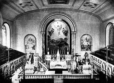 In 1882 another consecration was held, this time for the new altar. “The general appearance of the altar is similar to the one in St. Ann’s Church, in East Twelfth-street,” reported The Times. “It is of Carrara marble, on a base which is reached by three clouded marble steps. On the front and centre of the altar is a niche in which is a marble recumbent figure of the Savior of the tomb. It is flanked on either side by scenes in the life of the Savior elaborately wrought in the marble. The canopy over the tabernacle is supported by four columns of mottled red Vermont marble. Its roof terminates in a foliated pinnacle, at the summit of which is a crucifix, the figure of the Savior being wrong in gold on a marble cross.”