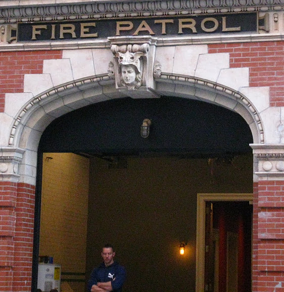 The Fire Patrol 2 building by now had seen the effects of misplaced fire fighter love. The limestone sculpture of Mercury had been painted in flesh-colored paint with bright yellow hair. The limestone at street level was painted white and the entire building above was covered in shiny red enamel; the firefighters’ favorite hue.