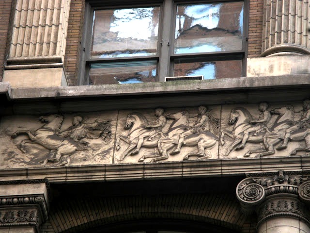 | The terra cotta frieze above the third floor was a copy of the frieze of the Parthenon -- photo by Alice Lum |