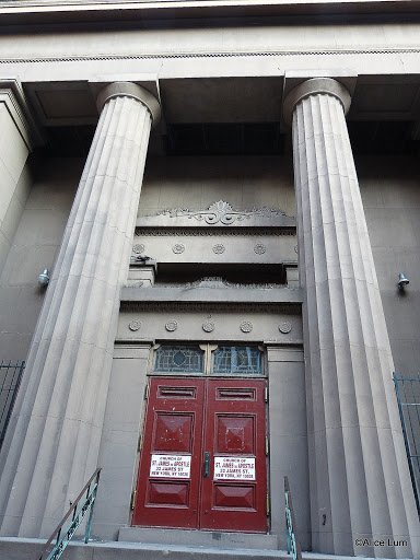 My sister and I discovered St James this fall. Our Great Grandparents had been married there, and we both remembered hearing out grandmother's complaints that an aunt had left her house on Oliver Street (now the parish house) and all of her money to the church. So we went to check it out. I've lived in NY for nearly 40 years, and while I had been to see the house on Oliver Street - never knew what was around the corner. It's a beautiful and stately old building. We tried to gain access and also had no joy with the parish house. Evidently the care of the building has fallen to St. Xavior's which is near by, but the main part of the church is deemed unsafe, and only the basement is open to the public. One can only hope that some day it will be repaired and considered safe for a visit. I'd love to see it go the way of The Museum on Eldridge Street.