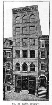 The brick-faced former mansion at No. 31 Bond Street was nationally infamous in 1887. It had been the scene of the brutal murder of Dr. Harvey Burdell in 1857 and 30 years later no one had forgotten. It was perhaps its gruesome reputation that resulted in a rapid turnover of owners.